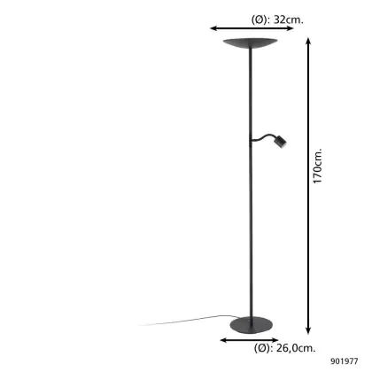 Eglo Lampada da terra Conivarino Acciaio Nero 30.5W 3150lm - 827 Bianco Molto Caldo | Dimmerabile