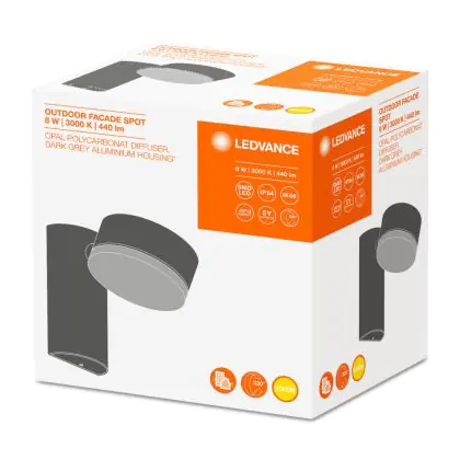 Descrizione Lámpara LED Ledvance Outdoor Facade Faretti 8W 3000K Gris 440 Lumen LED Integrado