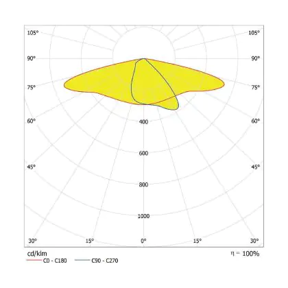 L'alloggiamento impermeabile di questa sorgente luminosa non è l'unica ragione per cui è perfetta per l'uso all'aperto. Infatti bisogna considerare anche la distribuzione della luce di questa lampada stradale, che ha apertura del fascio luminoso di 155x69° ed emette luce di colore 3000K - Luce Calda.