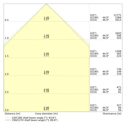 Il codice colore è una combinazione di resa cromatica (CRI) e colore della luce (Kelvin). La prima cifra indica la resa cromatica (1 = resa del colore molto bassa, 9 = massima resa del colore), mentre la seconda e la terza si riferiscono al colore della luce. Esempio: il codice colore 830 indica una buona resa cromatica (8) e luce bianca calda (3000K). |