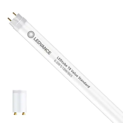 Il Ledvance Tubo LED T8 Value (EM/Mains) Standard Output 6.6W 800lm - 865 Luce del Giorno | 60cm - Sostitutiva 18W è l’alternativa perfetta per il tubo fluorescente standard 18W nelle plafoniere con un reattore. Con questo tubo LED hai una garanzia di una vita media utile molto lunga e 5 anni Lampadadiretta.it di totale garanzia. .