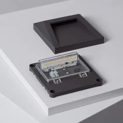 Questo apparecchio può essere usato sia in spazi interni che in spazi esterni, poiché ha indice di protezione contro l'ingresso di acqua e polvere IP65. In generale, un apparecchio con IP44 è resistente a schizzi di acqua e umidità, e può quindi essere installato in spazi esterni molto umidi o esterni riparati, come sono una tettoia. Un apparecchio che invece verrà esposto a intensi getti di acqua deve avere almeno IP54. Questa lampada ha anche un indice di resistenza a urti e impatti di IK06 - 1 Joule