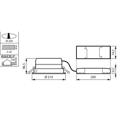Descrizione Philips Downlight LED LuxSpace Compatto Altezza ridotta DN570B 16.5W 2200lm 80D - 830 Luce Calda | 214mm - Aluminium Riflettore