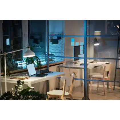 Con gli apparecchi dimmerabili si può rregolare l'intensità luminosa. Quando si abbassa la potenza della luce si consuma meno energia elettrica e si risparmia quindi sui costi energetici. Le lampade dimmerabili possono anche essere usate per creare un'atmosfera molto accogliente. Tieni presente che hai bisogno di un dimmer LED per regolare apparecchi LED.