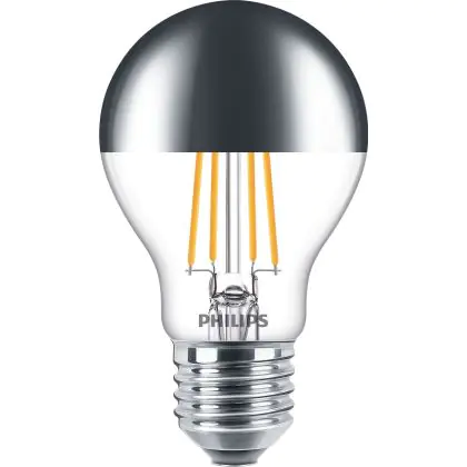 La Philips MASTER Value LED Bulbo E27 Pera Mirror 7.2W 650lm – 827 Bianco Molto Caldo | Miglior resa cromatica - Dimmerabile - Sostitutiva 60W è la perfetta sostituzione per la tua lampada convenzionale 50W con attacco E27 grazie alla sua tecnologia LED. Passare a LED ti offrirà tanti vantaggi!