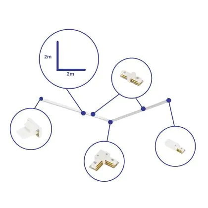 Rail Set 1-Fase L 2 x 2 Metro Bianca | incl. Tappo Di Chiusura, Connettore di Alimentazione e L -Connettore