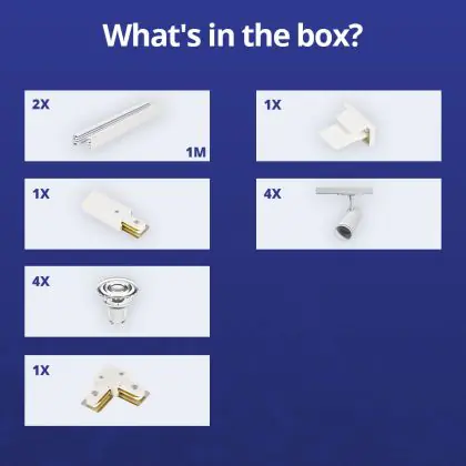 | Nome del fabbricante | Complete L shaped 1-Phase Track Set White incl. 4x Spot fixture + GU10 2700K 3W Dim – 1 x 1 meter i | |